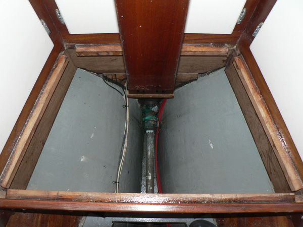 Base of cockpit control post, inboard stuffing tube, and shaft sump