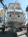 Catspaw also carries a 45 lb CQR anchor, a long length of 3/8 in chain, and a long length of 5/8 in nylon line for possible use in a storm situation. We have previously deployed the storm anchor and line, but the chain has never been out of the forepeak.
