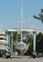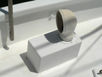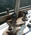 Just aft of the deckhouse, at the forward end of the cockpit, the mizzenmast rises from the forward end of the aft stateroom. An acryllic and weblon boot (lashed to the mast and to a rim lining the mast hole in the deck) covers the crack between the mast and deck.