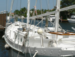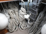 All sheets and halyards are 1/2 in dacron three strand. The sheets and the mizzen halyard are controlled from inside the cockpit. The main halyard and all jib halyards are controlled on deck from the base of the mainmast.