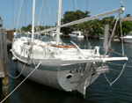 Catspaw's underbody features an outboard rudder, modest draft, slack lines, and a long straight keel. These features result in stable troublefree steering and an easy motion. Catspaw is comfortable on the open sea, but is also well suited to gunkholing more shallow environments such as the Bahamas.