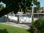 A major advantage of relatively light ground tackle is that it can be deployed and raised by hand (with some help from the engine to slack the line). A disadvantage is that light ground tackle does not hold as well as heavy ground tackle. A second disadvantage is that nylon line can chafe through on objects on the bottom, so one has to be very careful that this line stays away from such objects (by using auxilliary floats attached to the line). As discussed in the Owner's Comments section of this site, I have no hesitancy in recommending this system for the Bahamas, where most anchorages are relatively shallow and where one can almost always find a patch of sand free of obstructions to anchor in. We have also employed this system in much less favorable environments (one year in the Caribbean and four years around the world). The bottomline is that Catspaw survived, but, if we were to make these trips again, we would do something to make her anchoring system more secure (most probably increase the chain length to 30 m and add an anchor windlass to help haul in this chain).