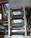 Catspaw employs two 100 amp hr 12 VDC deep cycle storage batteries. One of these batteries is kept in reserve, just in case the working battery becomes discharged. A battery switch mounted at the aft end of the engine room determines which of the two batteries is currently active. An auxilliary switch in the DC section of the electrical panel enables one to recharge both batteries simultaneously (without accessing the main battery switch).