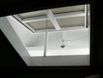 Two of the additional hatches are simple trunk hatches that open forward. The aft hatch is amidships, between the aft end of the cockpit and the transom, and opens on the aft end of the aft stateroom. The forward hatch is amidships, just aft of the bits, and opens on the forepeak. The third additional hatch, a skylight above the saloon, lies between the mainmast and the forward end of the deckhouse. This skylight runs fore and aft and has two leaves that open outboard, port and starboard. These hatches can all be propped open to improve the circulation of air.