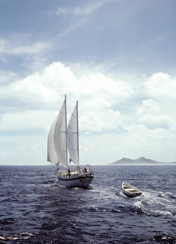 Catspaw is a 36 ft auxilliary cruising ketch, designed, built, maintained, and sailed for some forty years by her original owner, Russell Snyder and family. During this period she extensively and repeatedly cruised the Bahamas (as recently as early summer 2007 and 2008) and twice ventured even further afield, in 1973, to the lesser Antilles (getting as far south as Grenada) and, in 1980-1983, east to west around the world via the Panama and Suez canals. From 1986 through 1991, she was employed in the Bight of Abaco, Bahamas, in an NSF sponsored field project to study the wind generation of ocean waves. In January, 2010, Catspaw was sold to Valentin Argirov of Santo Domingo, Dominican Republic.
